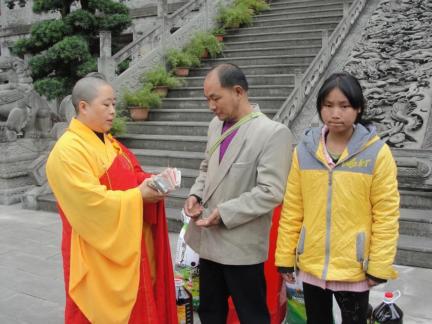 勝智法師(shī)親自(zì)将善款交付≠λ受助家(jiā)庭
