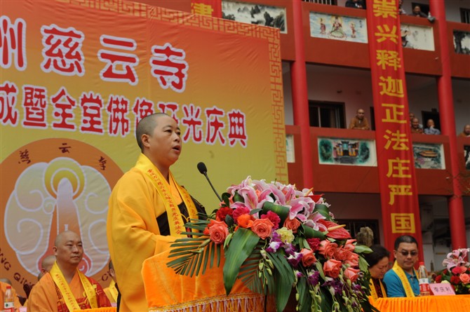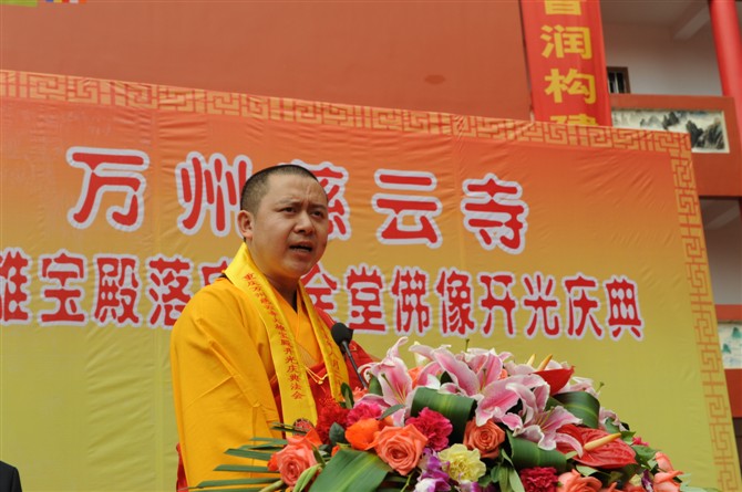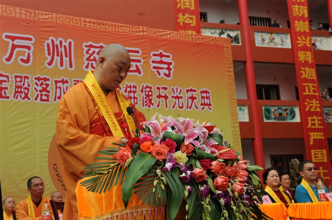 重慶市(shì)佛教協會(huì)常務副會(huì)長(cháng€±)兼秘書(shū)長(cháng)、羅漢寺方丈智豐大(dà♠¥<)和(hé)尚代表市(shì)佛協緻辭